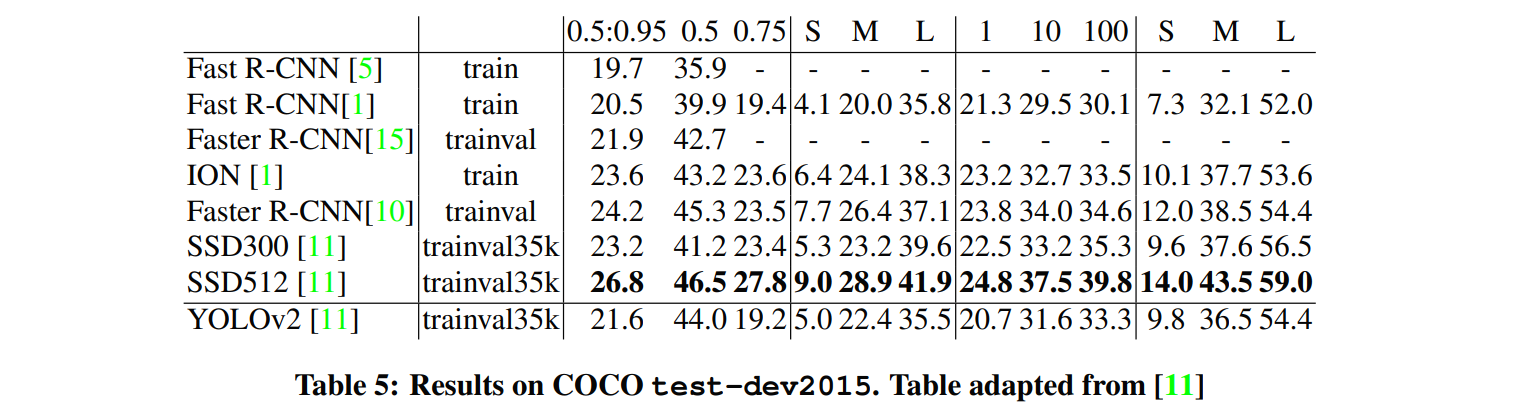 ㅁㄴㅇㄹ아래 표는 COCO dataset에서의 YOLOv2와 다른 detector의 비교 결과이다. IOU = .5에서Faster R-CNN과 유사한 44.0mAP를 달성하는 것을 확인할 수 있다.