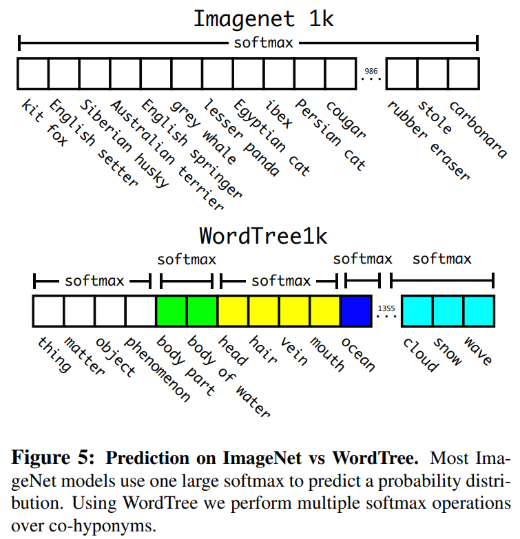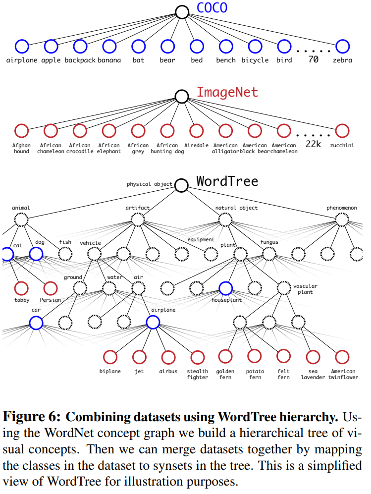 WordTree를 사용하여 dataset을 결합한다. 아래 그림은 ImageNet과 COCO label을 결합하는 예시이다.