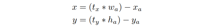 Anchor box를 사용할 때, 발생하는 두 번째 문제는 초기 iteration 중에 box의 위치를 예측할 때의 불안정성이다. Region proposal network에서는 중심좌표(x,y)가 다음과 같이 계산된다 (ex. tx=1인 경우 anchor box 너비만큼 오른쪽 이동).