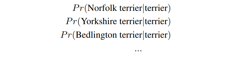 ImageNet label은 WordNet에서 가져왔고, 전체 구조를 사용하기 보단 hierarchical tree를 구축하여 문제를 단순화 한다. 이를 통해 시각적 개념의 계층적 모델인 WorkTree를 구축한다. 우리는 다음과 같이 조건부 확률을 통해 예측한다.
