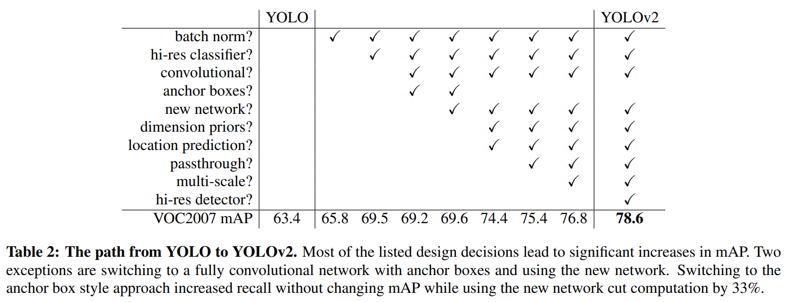 YOLOv2는 보다 빠르고 정확하며, 이를 위해 네트워크를 단순화하고 표현을 더 쉽게 학습할 수 있도록 한다. YOLO와의 비교 결과는 아래 표에서 확인할 수 있다.