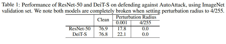 이전 논문에서 AutoAtack Robustness (조금의 변화에 대해 강건한 정도)에 대한 실험(에서 perturbation radius를 0.001로 설정 시 CNN이 더욱 강건하다는 결론을 내렸지만, 4/255 설정 시 두 모델 모두 broken되는 것을 확인할 수 있다 (표1).