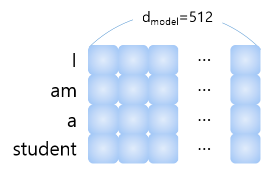 입력 문장은 다음과 같이 (입력 sequence) x 512 입력으로 들어온다. 이때, transformer는 병렬처리를 수행하기 때문에 문장의 순서 정보를 따로 추가해 주어야 한다. 이를 위해 input embedding에 positional encoding을 추가해준다.