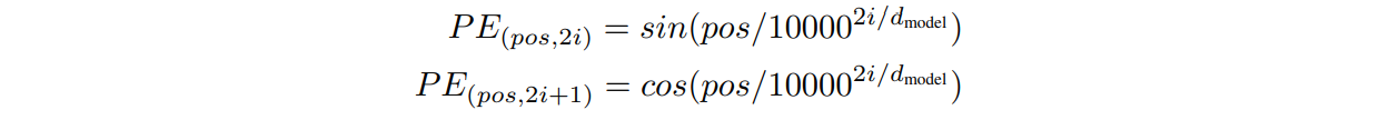 Transformer에서의 positional encoding 수식은 다음과 같다.