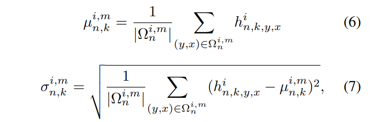 인스턴스 표준화 [26]와 유사하게, 활성화는 채널별로 표준화된다. 그러나 ALIAS 정규화는 채널 k의 활성화를 잘못 정렬된 영역과 다른 영역의 활성화로 나눈다.