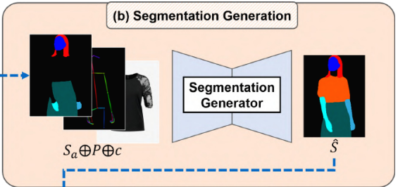 각 단계의 input으로 clothing-agnostic image Ia와 clothing-agnostic segmentation map Sa를 제안하는데, 이는 의류 아이템 c의 형태를 제거하고 regenerate가 필요한 신체를 보존한다.