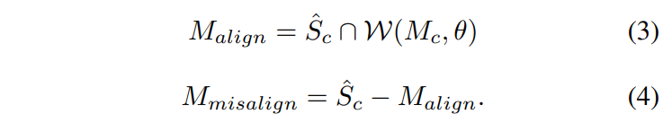 - the misalignment binary mask M_misalign ∈ L^(H×W) (Sc^에서 W(Mc, θ)는 제외)