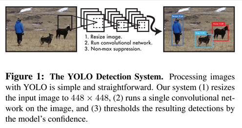 YOLO detection 시스템. YOLO는 기존 2-stage에 비해 몇 가지 이점이 존재한다.