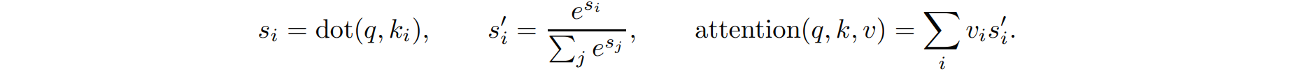 길이가 n인 경우 query=q, key=k, value=v라 하면, attention은 다음과 같이 정의된다.