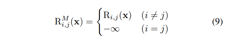 소프트맥스에서 자체 토큰 관계를 배제함으로써 서로 다른 토큰 간 관계에 더 큰 점수를 부여하는 방법