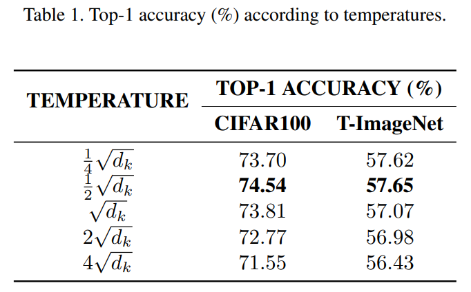 • T = 학습가능한 temperature 적용