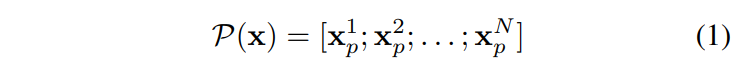 3. concat된 feature를 겹치지 않는 patch로 나누고 식(1)과 같이 패치를 flatten한다. 그 후, LN(Layer Normalization) 및 linear projection을 통해 visual token을 얻는다.