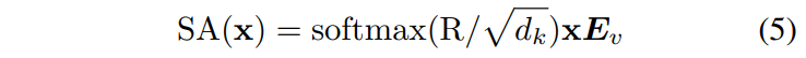 1. Query(xEq)와 key(xEk)는 동일한 입력 토큰에서 선형으로 투영되어 self 토큰 관계는 보통 서로 다른 토큰 간 관계보다 크다. 따라서 식 (5)의 소프트맥스는 self 토큰 관계에 상대적으로 높은 점수를 주고, 서로 다른 토큰 간 관계에 작은 점수를 준다.