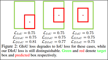 Distance-IoU Loss: Faster and Better Learning for Bounding Box Regression 논문에서 제안된 방법으로 IoU와 함께 중심 좌표를 활용한다. https://arxiv.org/pdf/1911.08287.pdf