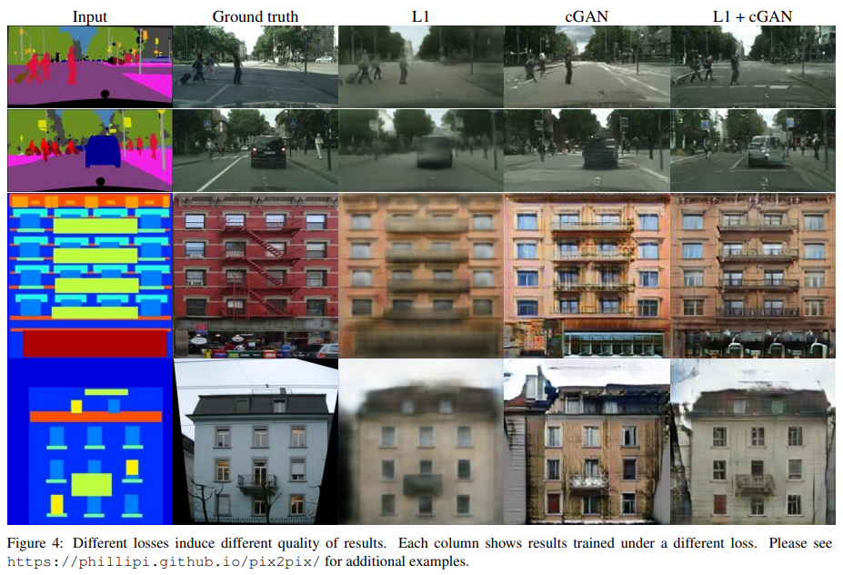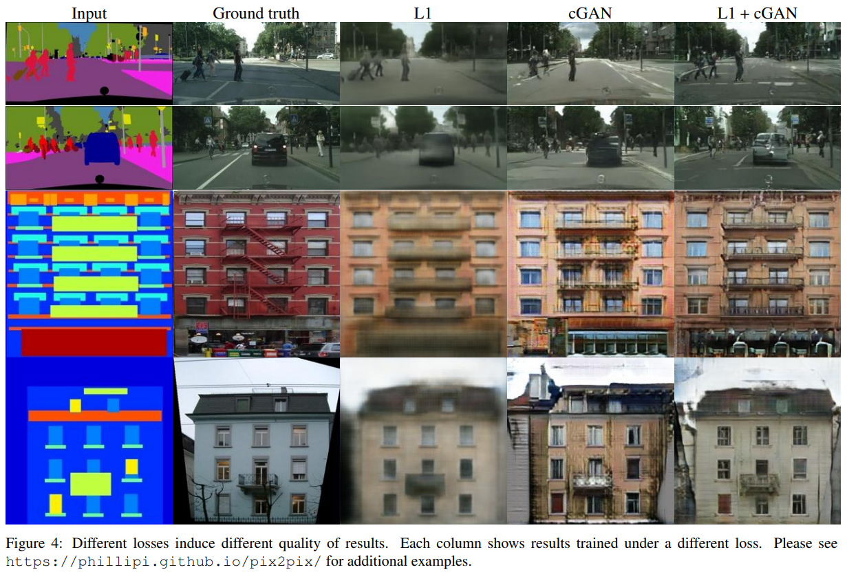 GAN은 'output을 real과 구분할 수 없게 한다'는 목표를 갖고 있지만, 이로인해 흐릿한 이미지를 생성하는 문제가 있다. 따라서 추가적인 손실함수를 필요로 한다 (본 논문에서 추가 loss를 제안함).