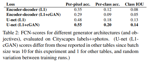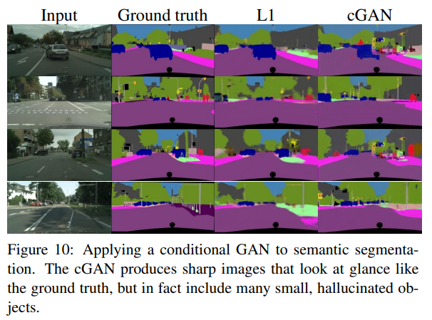 segmentation은 다른 image 생성보다 덜 복잡함. L1만으로도 충분히 좋은 성능을 보임.