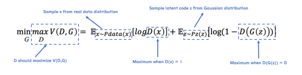- Generator 완벽할 때, Discriminater는 log(0.5)+log(0.5)=0.69로 수렴하게 된다.