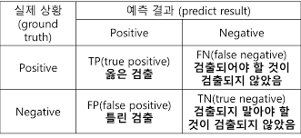 - F1 score = (Precision과 Recall의 조화평균) = 2*(Precision * Recall) / (Precision+Recall)