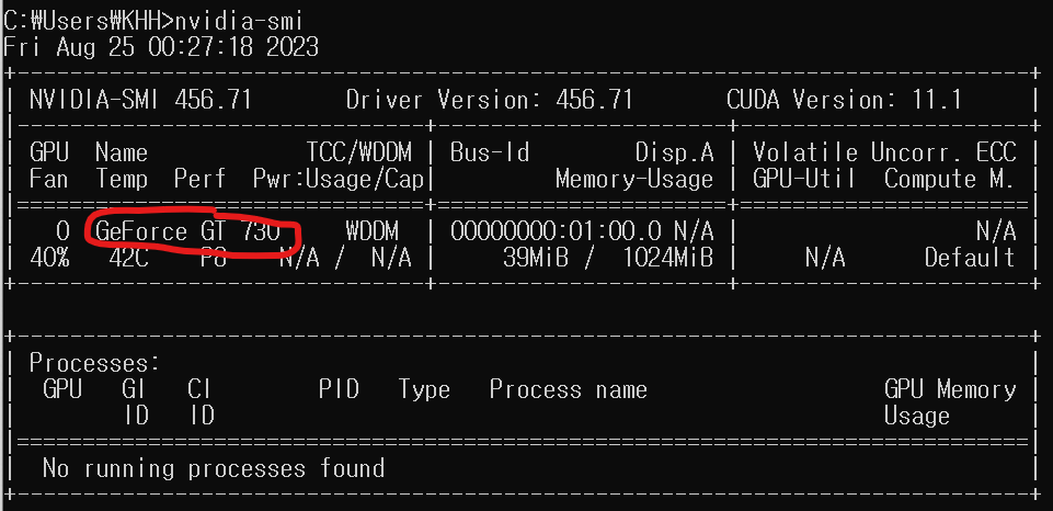 - nvidia-smi 명령어 수행 (그래픽 카드 명: GeForce GT 730)