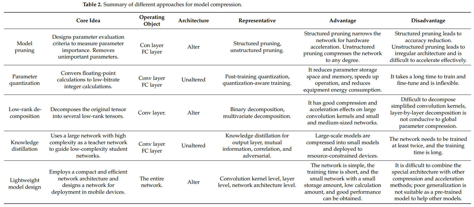다음과 같은 모델 경량화 방법을 요약한다.