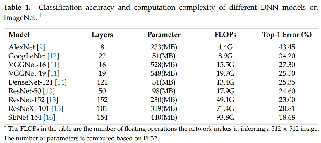 표1을 통해 모델이 복잡해질수록 classification 성능은 높아졌지만, 더 많은 storage와 computing resource가 사용된것을 확인할 수 있다.