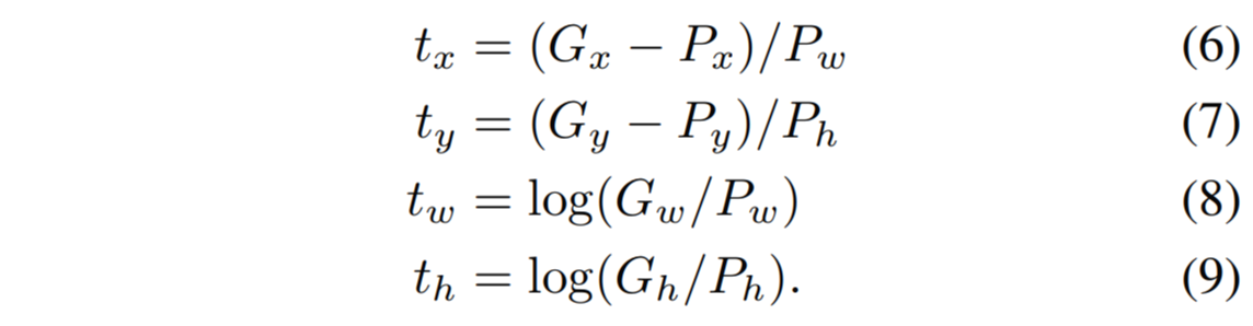 train 쌍 (P, G)에 대한 regression 대상 t는 다음과 같다.